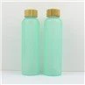 18oz Pārtikas kvalitātes augstākās kvalitātes borsilikāta stikla ūdens pudele ar visu korpusu Silikona uzmavu aizsardzību, 1 bambusa vāks ar iekšējo 304 nerūsējošā tērauda aparatūru un silikona gredzenu. Mēs nodrošinām, ka vienīgais materiāls, kas pieskaras ūdenim, ir stikls un 304 nerūsējošais tērauds. 100 procenti nesatur BPA.